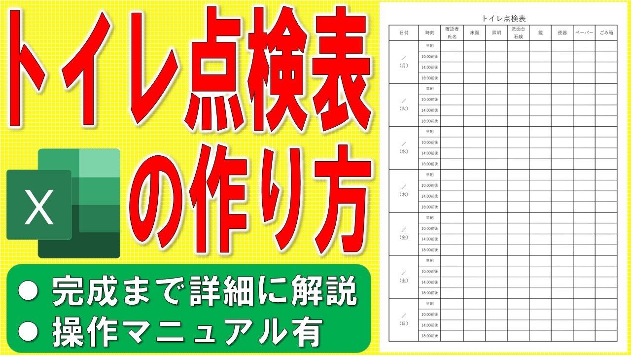 Excelでトイレ点検表を作る方法★お店のトイレ清掃チェックリストの作成方法★飲食店のトイレ週間点検表の作り方★トイレ掃除チェックリスト★ゼロから始めて完成まで詳細に解説★操作マニュアル有。