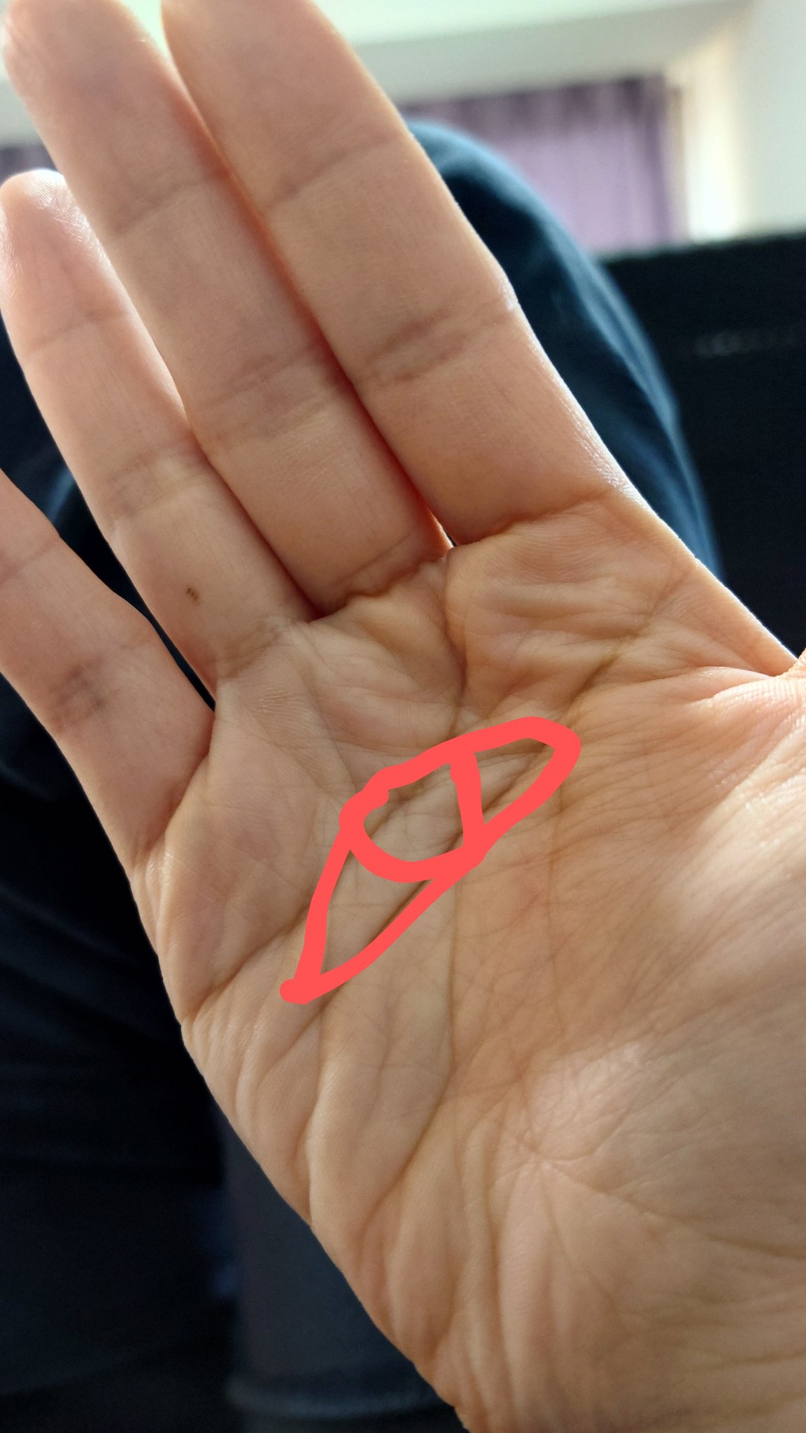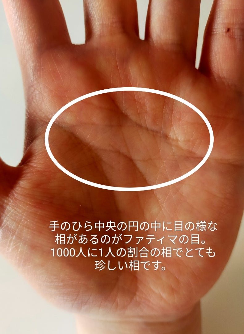 ファティマの目!, この手相はかなりまれですね。, なかなか有る人は少ない手相。,この手相が有る人はラッキーと思った方が良いですよ❣️何にでも挑戦する事をオススメします。特にこういう占い師とかそういう仕事はかなりピッタリ✨✨😆,人の応援も出来る人だからそういう仕事をすると生き甲斐を感じると思いますよ❣️。