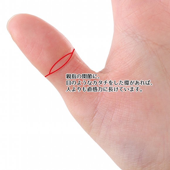 二重仏眼相👀 親指の第一関節、第二関節に 目のカタチ ありませんか? 第一関節だけの方も いらっしゃると思います。 一つだけでも 直感力があり、人の気持ちを察する能力に長けていると 言われています。 二つあったら より強い直感力、インスピレーション!! ご先祖に。