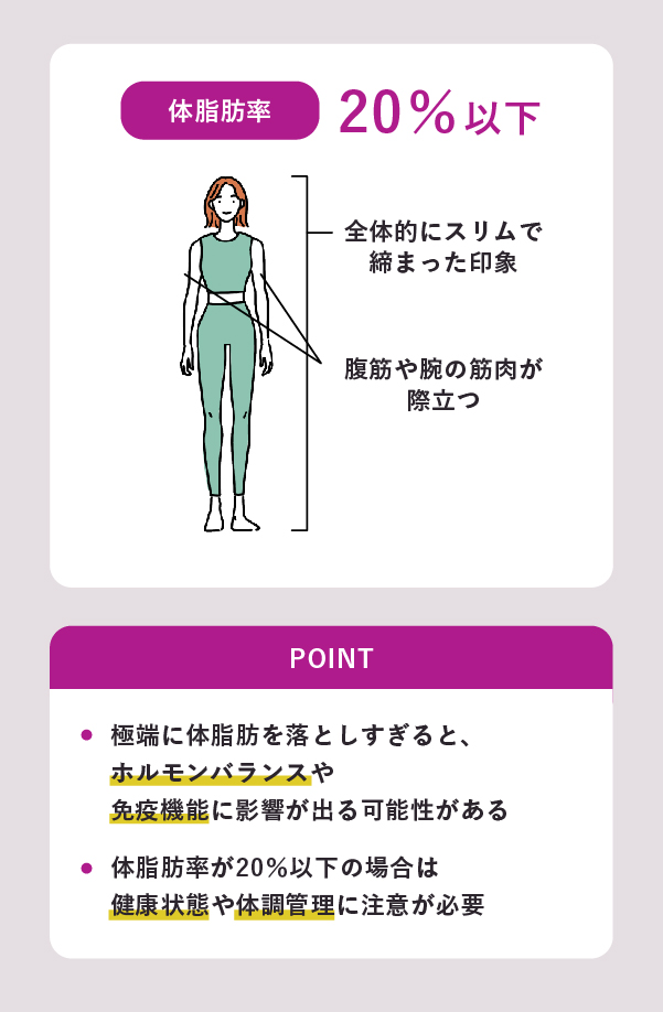 体脂肪率ごとの女性の見た目とは?標準・理想値も紹介ハルメク美と健康。