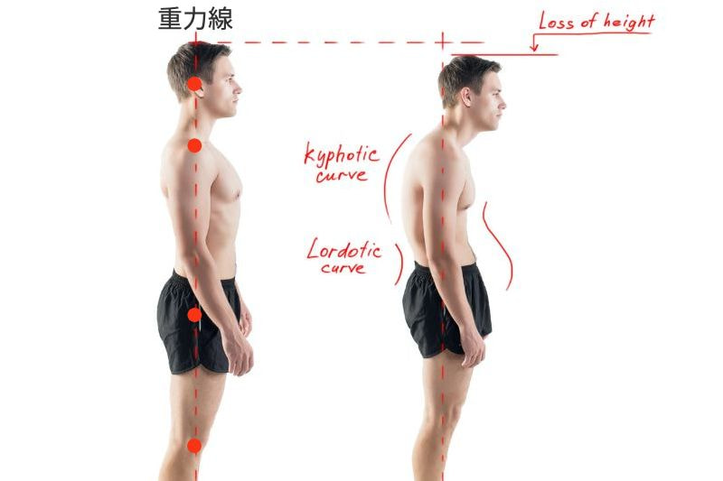 姿勢改善 姿勢矯正 猫背 ストレートネック 骨盤後傾 骨盤前傾の日本人男性のイラスト 全身横向きのイラスト素材113679221- PIXTA。