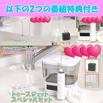 Amazonトゥースジェット スペシャルセット口腔洗浄器 口腔洗浄機 歯茎ケア 歯垢洗浄 歯周ポケット洗浄 舌の汚れをケア 歯垢除去口腔ケア グッズ アイテム 口臭 虫歯 歯周病 ケア デンタル 限定セット 特典日テレ7公式ノーブランド品口腔洗浄器。