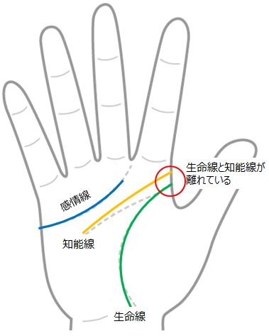 離れ型生命線と知能線の起点 始まり が離れている相。