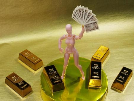 札束風呂に入る女性と金塊 金背景 G09 - No: 31241329写真素材なら「写真AC」無料 フリー ダウンロードOK。