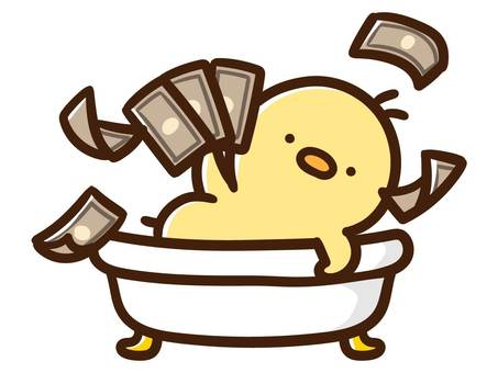 札束風呂に入るひよこのイラストゆるくてかわいい無料イラスト・アイコン素材屋「ぴよたそ」。