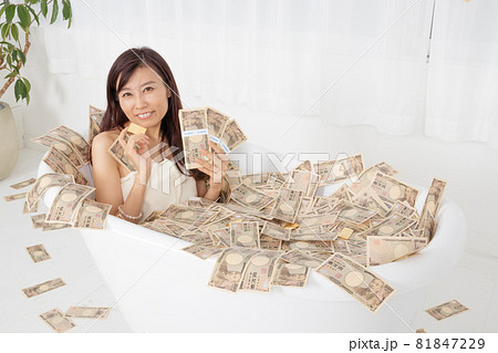 札束や金貨の有る札束風呂に浸かっている女性の写真素材81847229- PIXTA。