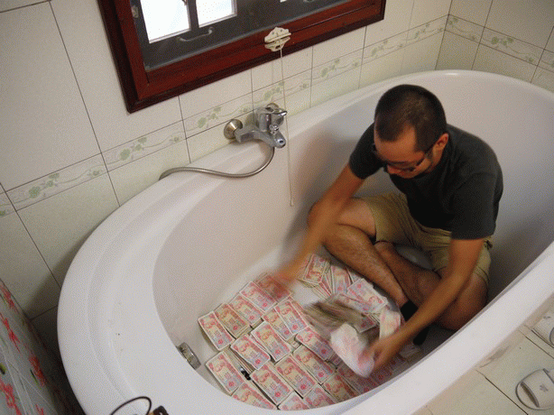 ベトナムの500ドン 2.5円 紙幣でリアル札束風呂 - べとまる。