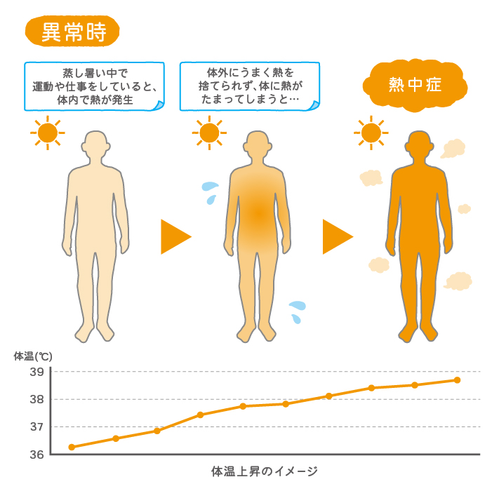 体温調節のメカニズム熱中症が発生するメカニズムは?熱中症を知る職場における熱中症予防対策。