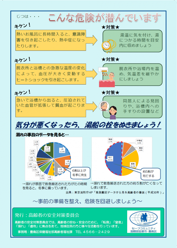 高齢者に向けた「溺れ・ヒートショック注意喚起のチラシ」を発行しました豊島区公式ホームページ。