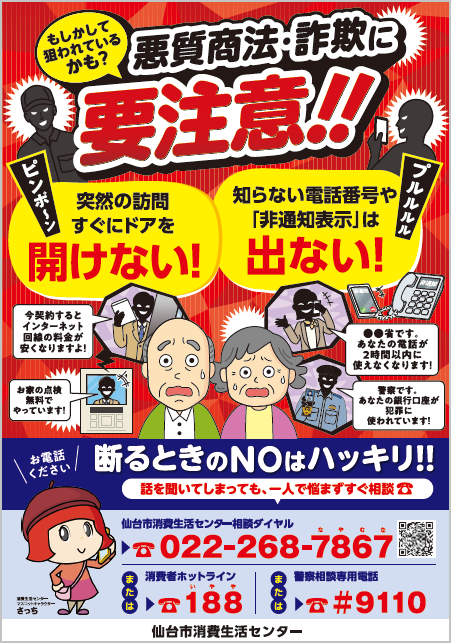 あれ??と思ったらすぐ相談を! 高齢者向け 啓発チラシ「気を付けて!悪質商法」注意喚起チラシを探す消費者教育ポータルサイト。