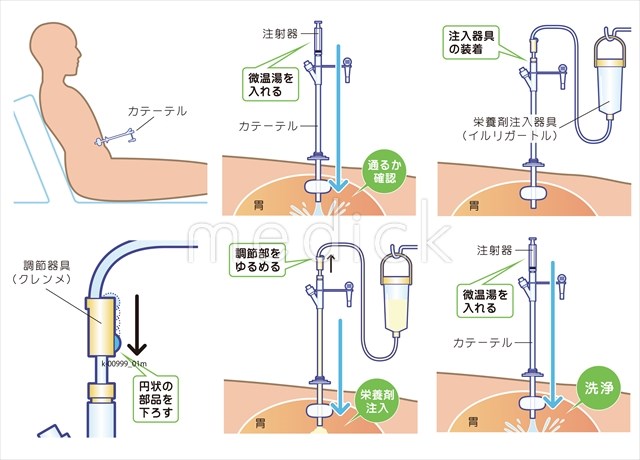 栄養剤の注入手順 - 医療のイラスト・写真・動画、素材販売サイトのメディック medick。
