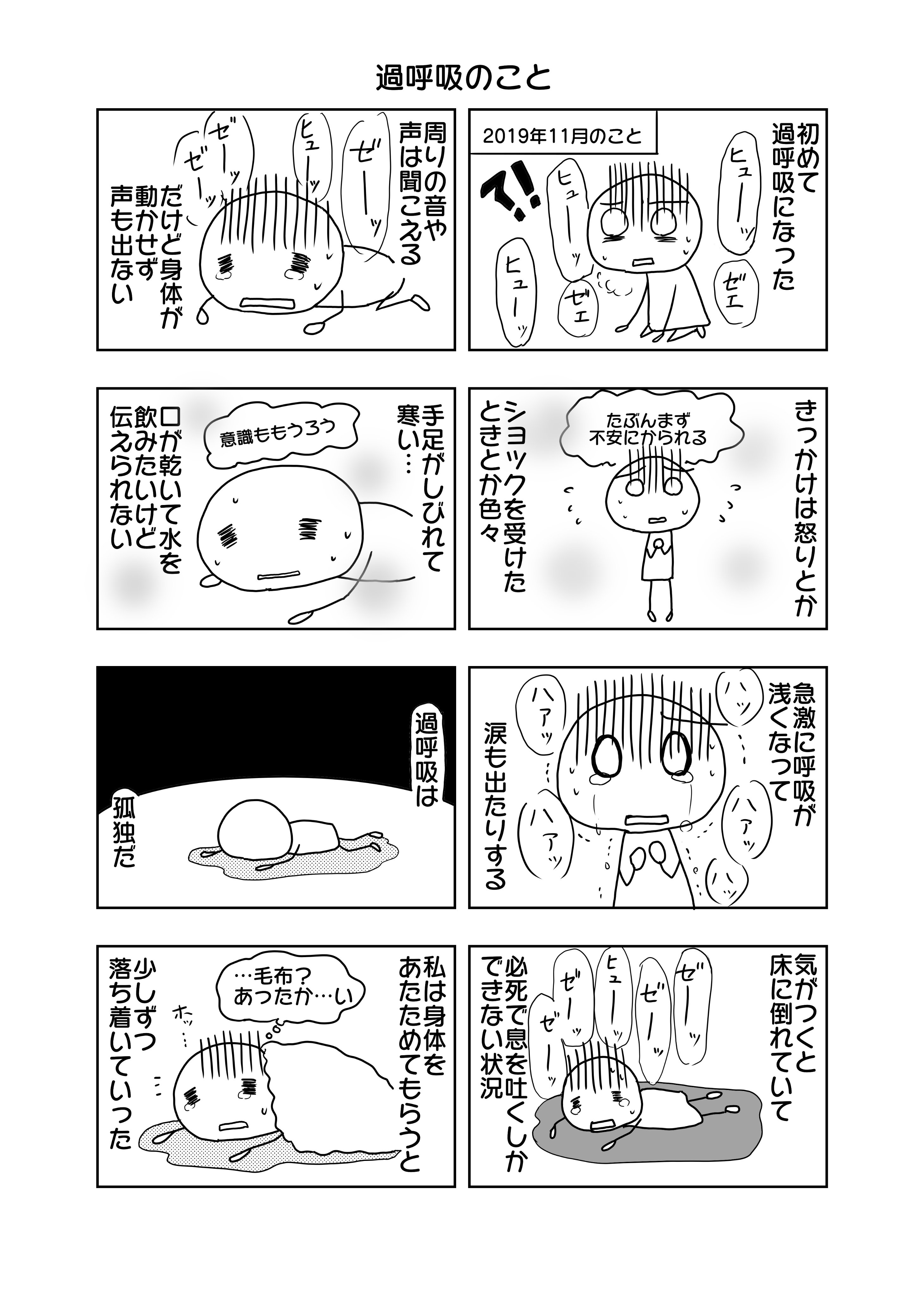 うぐいすパン on X: "2019年11月。初めて過呼吸になりました。 うつ病をきっかけにしたパニック発作的な症状だったのかと思います。 過呼吸は今も時々起こりますが、以前よりははるかに症状は軽いです。少しでも、今困っている人に届きますように。 #過呼吸 #過換気。