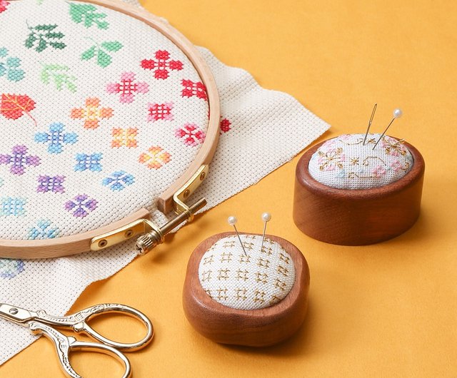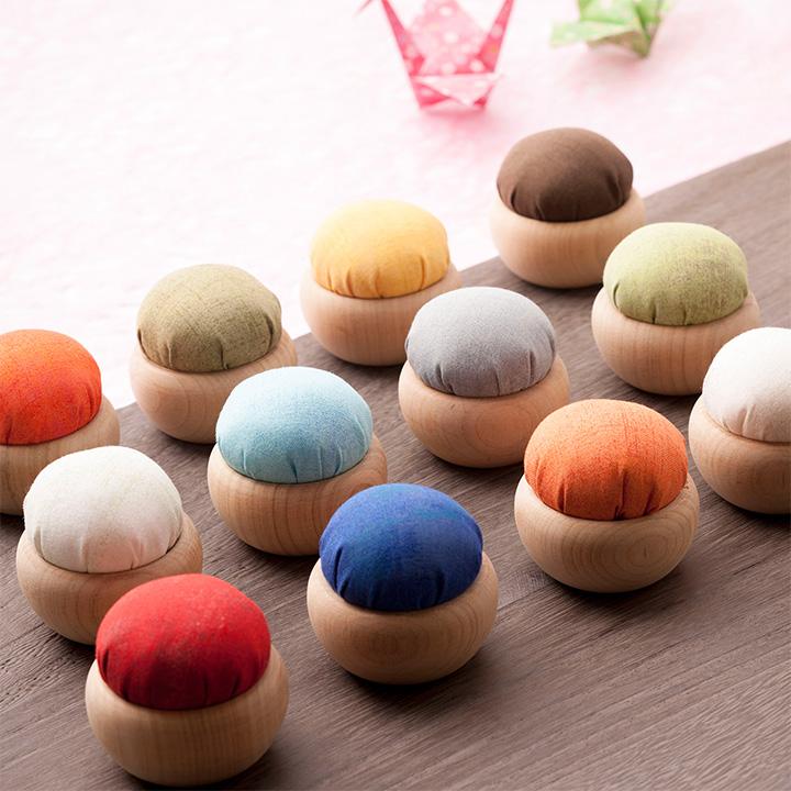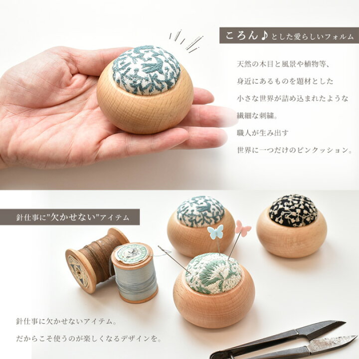 倉敷意匠 点と線 刺繍 丸型 ピンクッション ■ 天然 木 針山 針刺し フラワー 丸い 花 植物 鳥 バード 点 線 刺繍 まち針 縫い針倉敷意匠計画室 模様製作所 日本製 手芸 ハンドメイド 手作り クリスマス プレゼント Xmas 母の日 ■手作り工房MYmama エムワイママ。