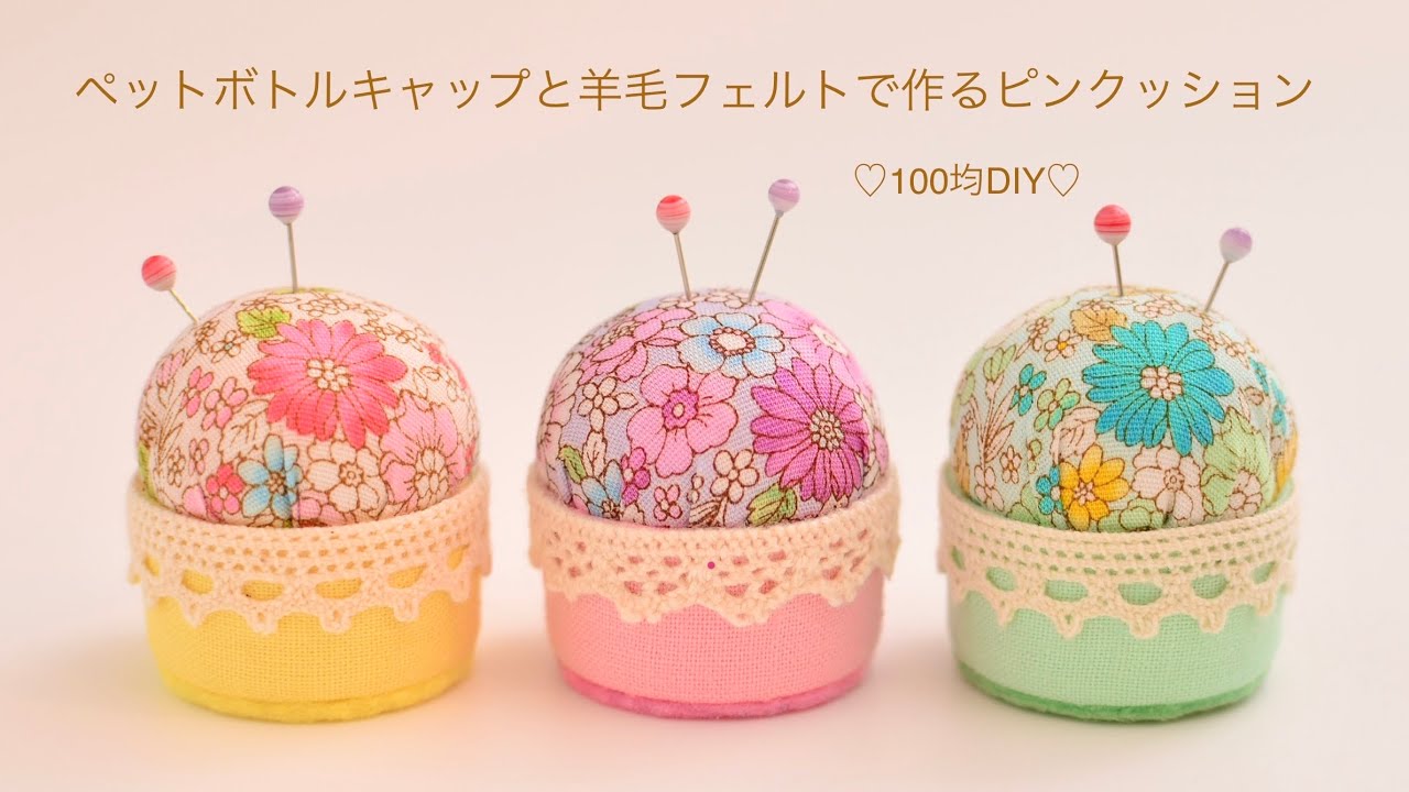 100均DIY ペットボトルキャップと羊毛フェルトで作るピンクッション♡ 手作り針山 Pincushion。