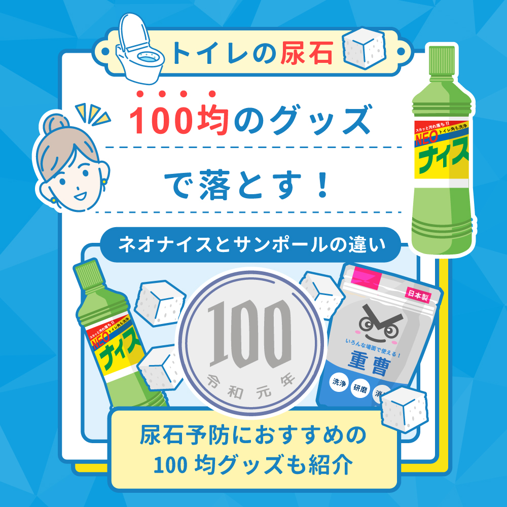 トイレの尿石を100均のグッズで落とす方法を解説!原因や予防策も紹介。