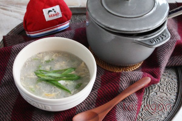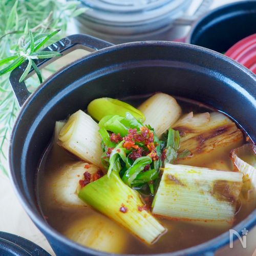 風邪予防・免疫力アップ とろとろ長ねぎのピリ辛スープ。