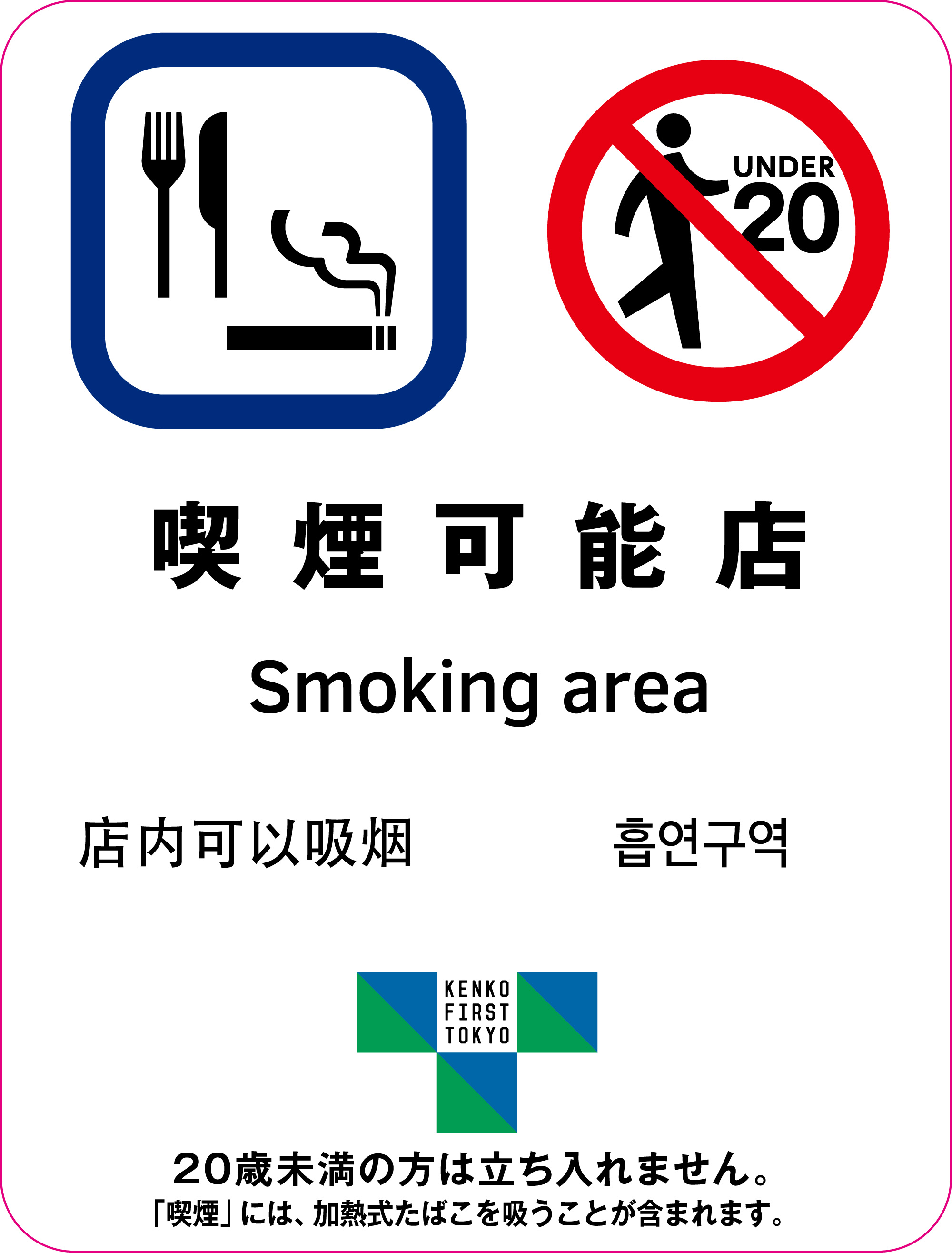 加熱式タバコ禁止も入れた、新・禁煙マーク シール 完成、頒布しています「タバコ問題首都圏協議会」公益社団法人 受動喫煙撲滅機構。