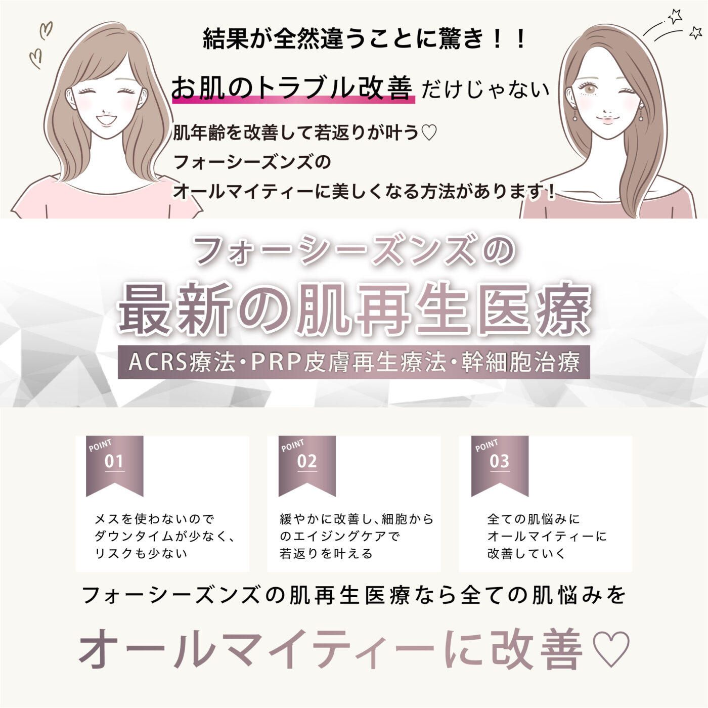 肌再生医療・幹細胞治療ならフォーシーズンズ肌再生美容クリニック。
