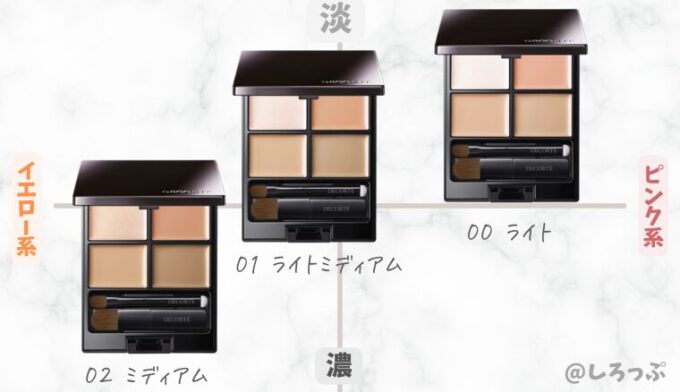 イエベ•ブルベ コスメデコルテ コンシーラーの色選び!00・01・02の違いを比較しろっぷ。