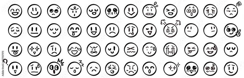 手書きのかわいい笑顔の顔文字 - シンプルな線画の絵文字のデザイン素材 Obrazy na ścianę • Obrazy ornament,ludzie, białymyloview.pl。