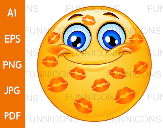 口紅のキスで覆われた笑顔の顔文字のクリップアート漫画、ai、eps、png、jpg、pdf ファイルが含まれており、デジタルファイルをすぐにダウンロードできます。 - Etsy 日本。