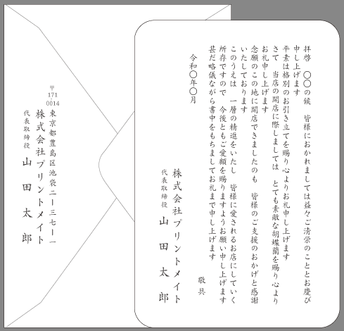 お礼状 店舗開店・オープン 例文とポイント1枚~即日印刷プリントメイト。