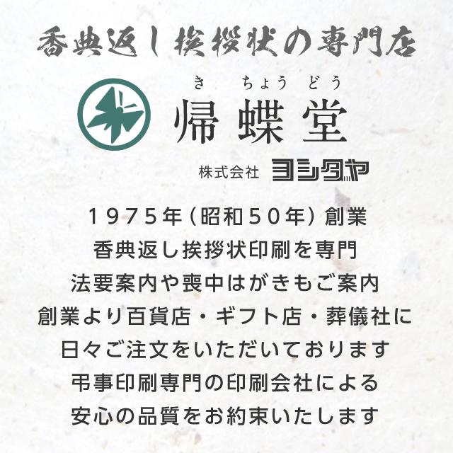楽天市場 香典返し 挨拶状 お礼状 礼華 名入れ 印刷 単カード 白封筒 10部~150部 忌明け 満中陰志 用紙 洋封筒 洋形 洋型 フォーマル49日 七七日 法要 テンプレート 文章 例文 帰蝶堂 : 帰蝶堂 挨拶状はがき印刷。