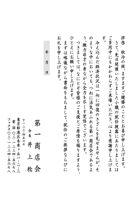 お礼状 社長就任祝い の書式テンプレート Word・ワードテンプレート・フリーBiz。