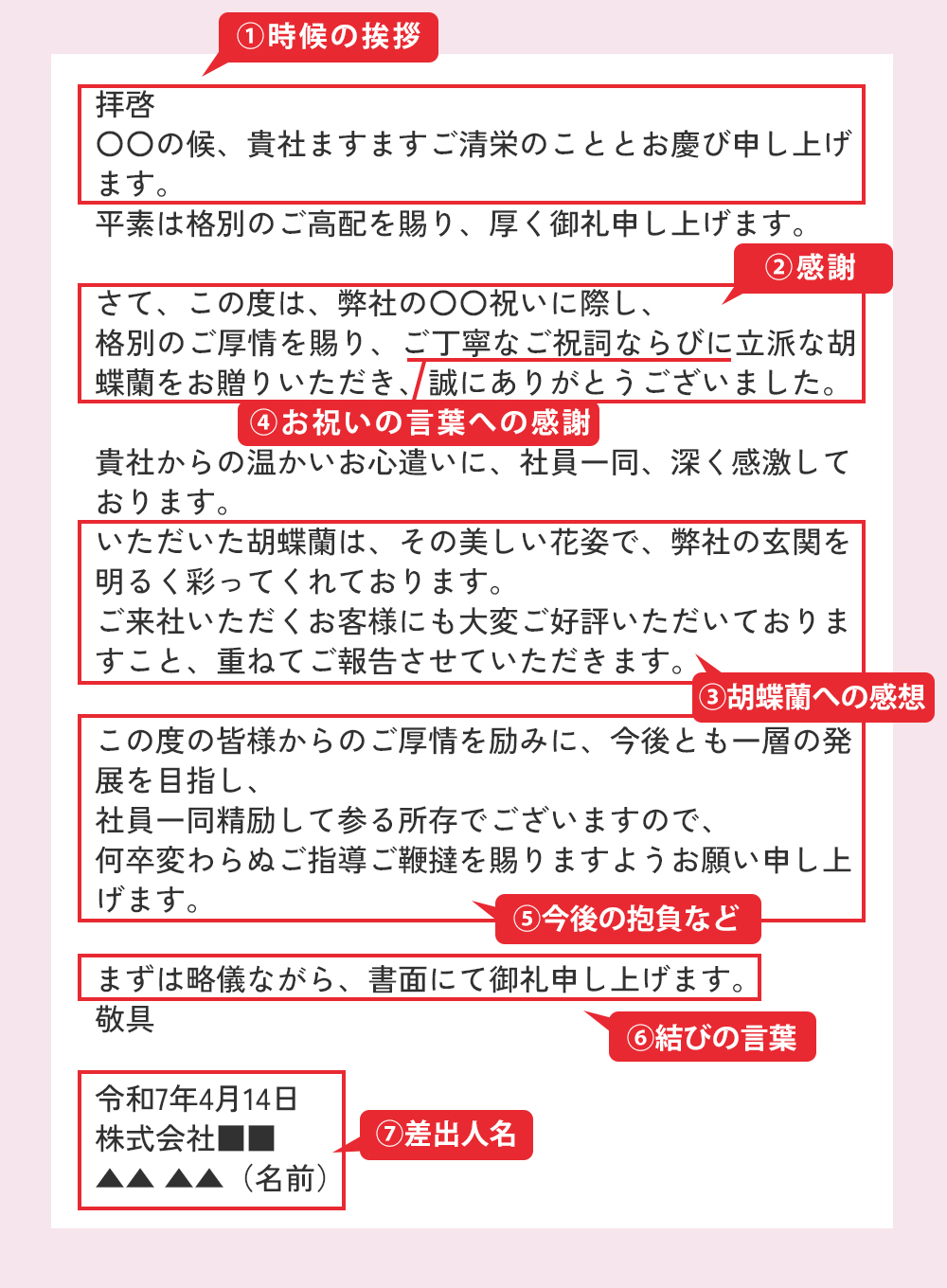 胡蝶蘭を頂いたらお返しは必要?お礼状に関する基本的なマナーと例文解説胡蝶蘭・スタンド花のプレミアガーデン。