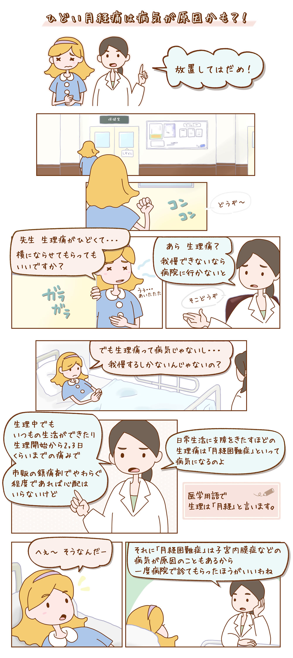 解説マンガ ひどい月経痛は病気が原因かも?! おしえて生理痛。