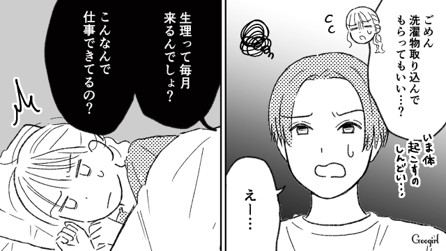 子ナシにはわからない!?>生理ツラくて助けてほしいのに 「頼るな?」姉にムカッ 第1話まんがママスタセレクト。