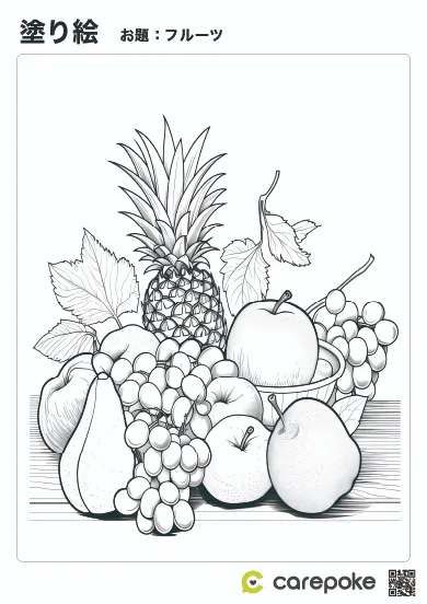 完全無料 脳トレ-塗り絵#5 塗り絵 フルーツで頭の体操!いつでもどこでも、介護のハテナを解決!「ケアポケ」。