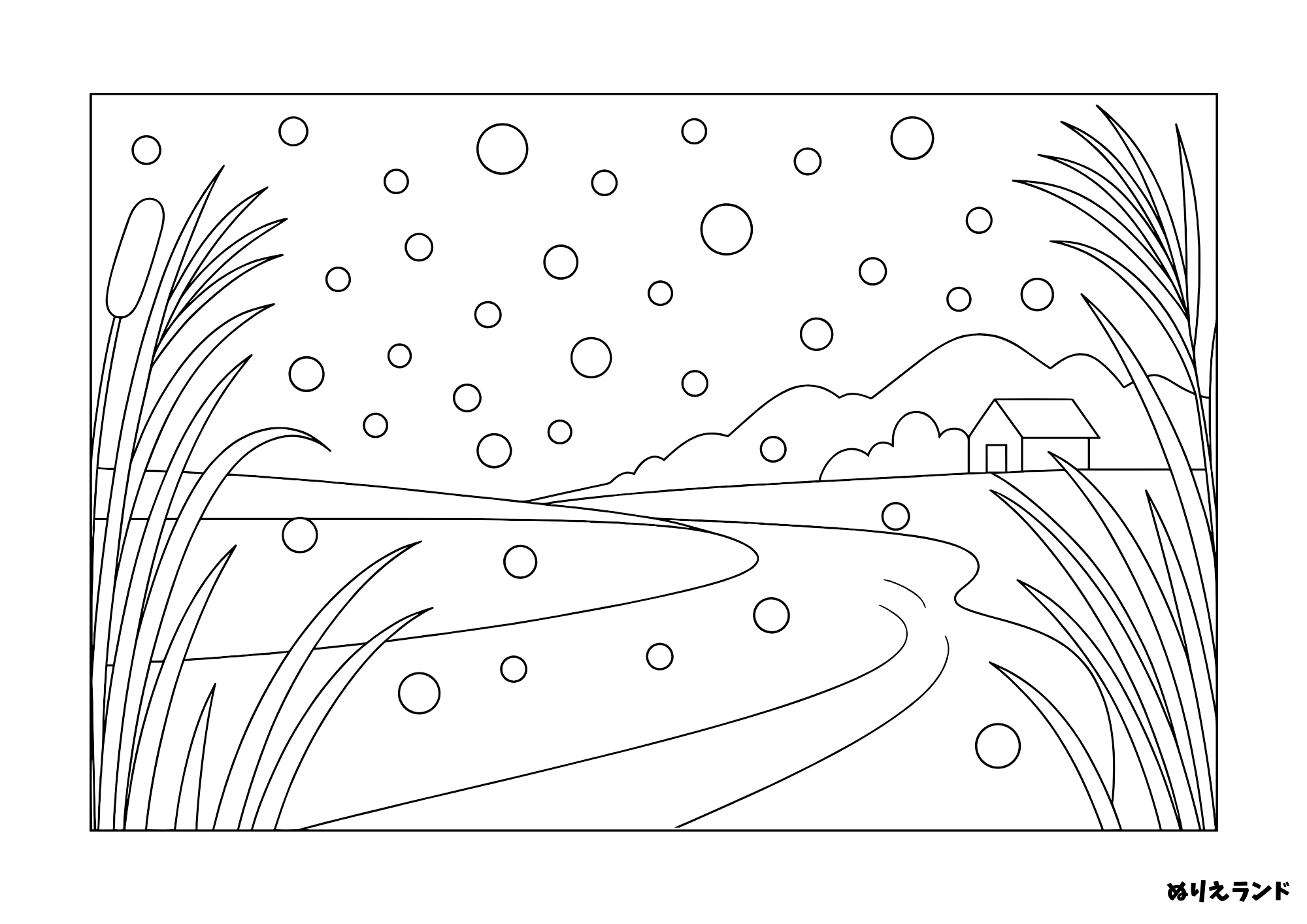 高齢者施設 無料塗り絵 大人の塗り絵 風景 秋life100ふくまるブログレクネタ・無料塗り絵・役立つ福祉情報。