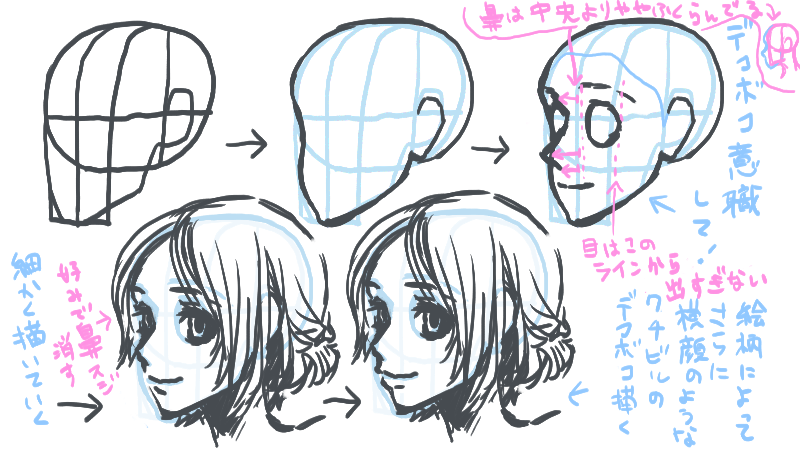 比率のバランスから学ぼう! 斜め顔と斜め後ろから見た顔の描き方いちあっぷ。