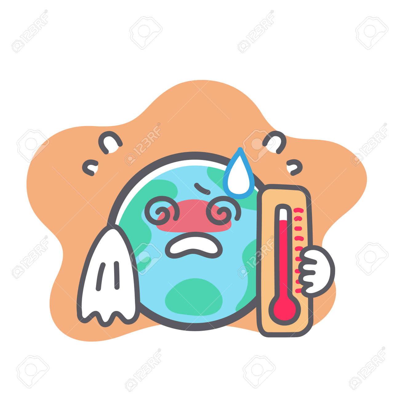 温暖化した地球のキャラクターと温度計 イラスト素材6144415- フォトライブラリ。