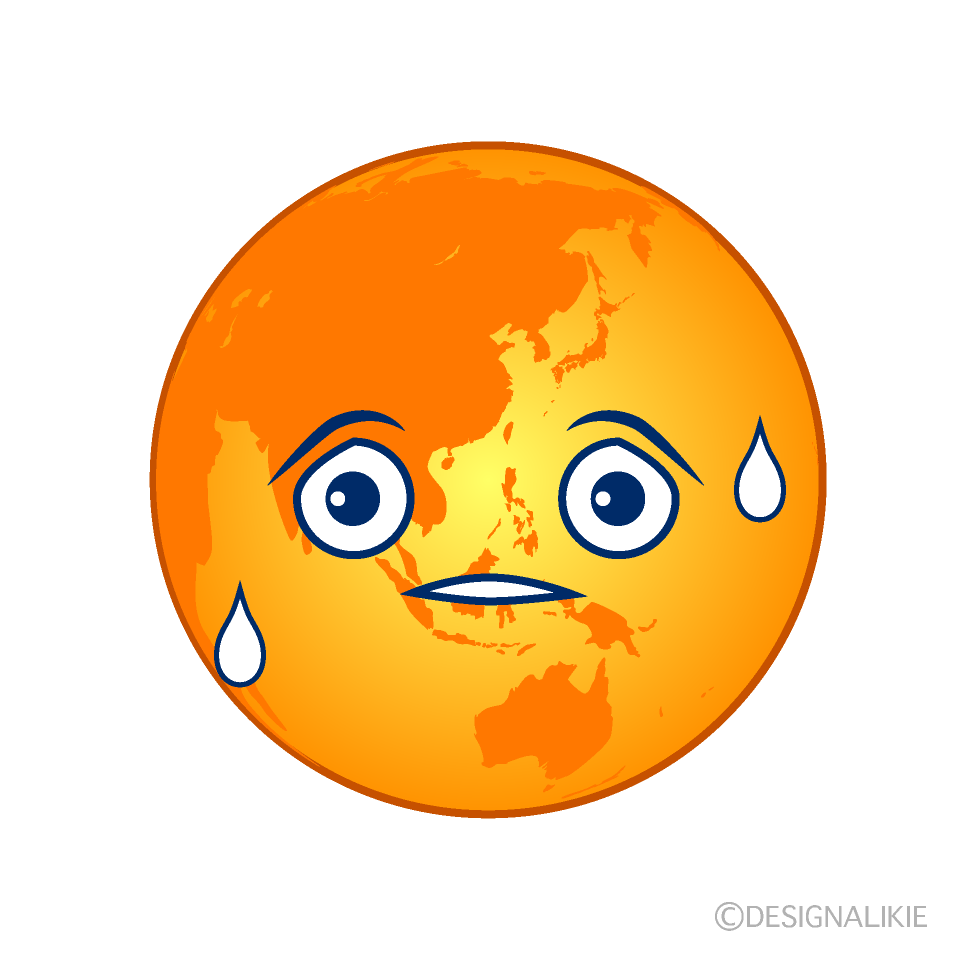 地球温暖化のイラスト「汗をかく地球のキャラクター」かわいいフリー素材集 いらすとや。