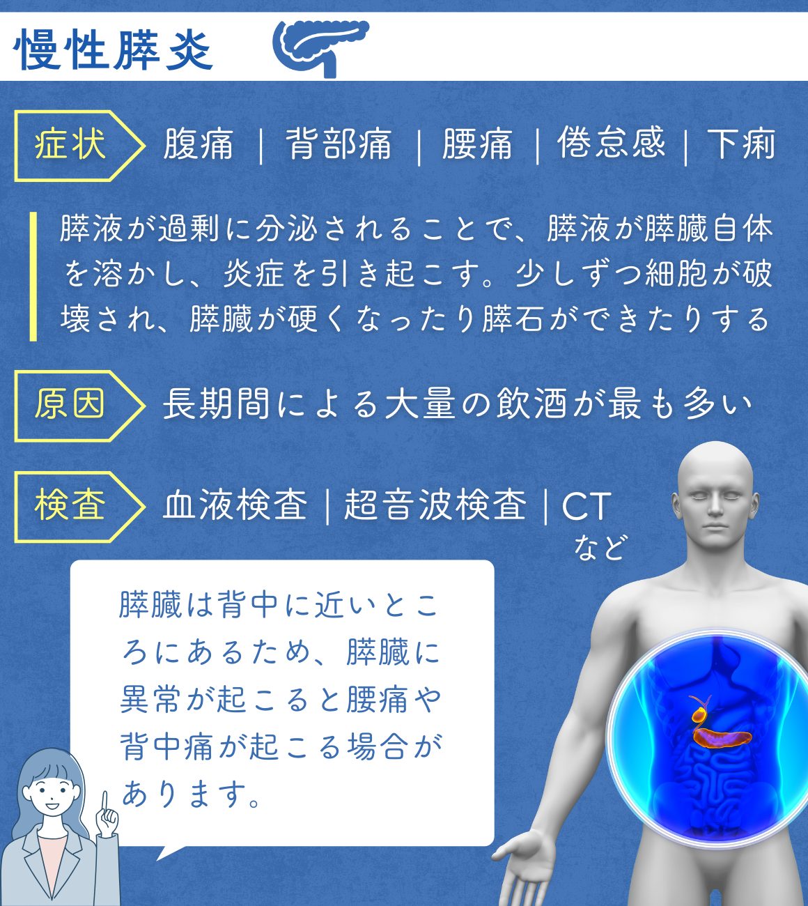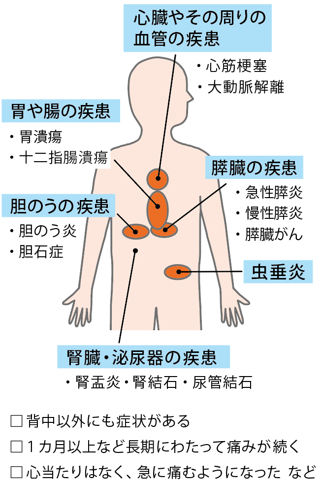 背中の痛みの原因は内臓疾患?考えられる病気、治療法について解説。