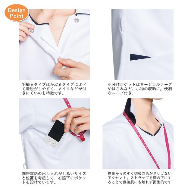 ユニフォーム1.COM 医療白衣com ドクターウェア KAZEN カゼン メディカルウェア 2023 長袖ジャケット ブルゾン・ジャンパーKAZEN レディス診察衣シングル型長袖 120-30。