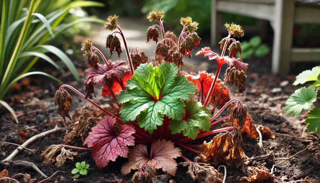 ヒューケラが枯れた? 地植えのフォーエバーレッドが復活レトニワ。