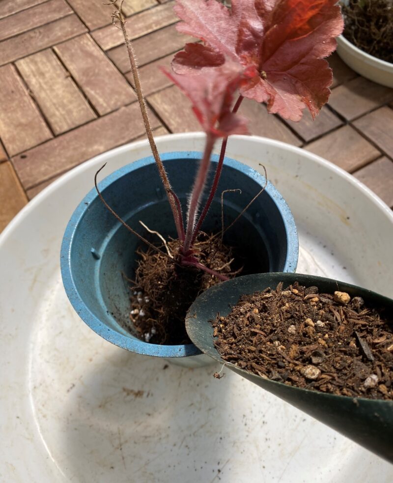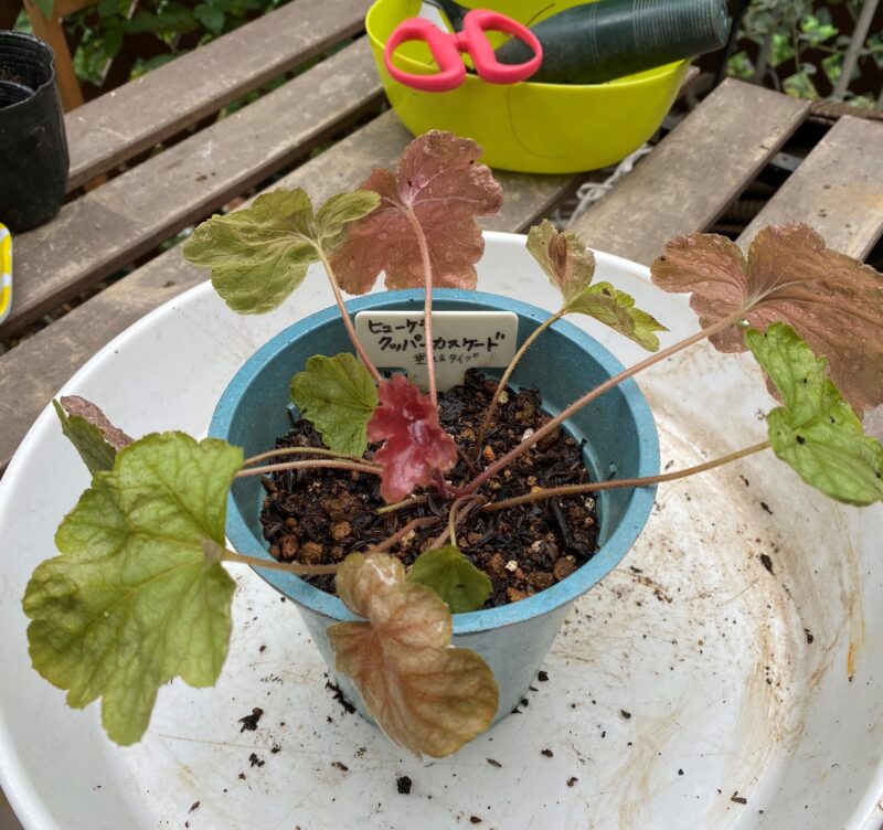 枯れそうなヒューケレラ・クッパーカスケード 掘り上げて、根腐れから復活させるレトニワ。
