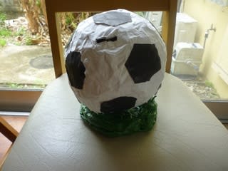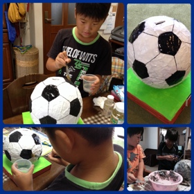 自由研究できた!!!張り子のサッカーボール貯金箱製薬会社で働く臨床開発ママンの育児日記。