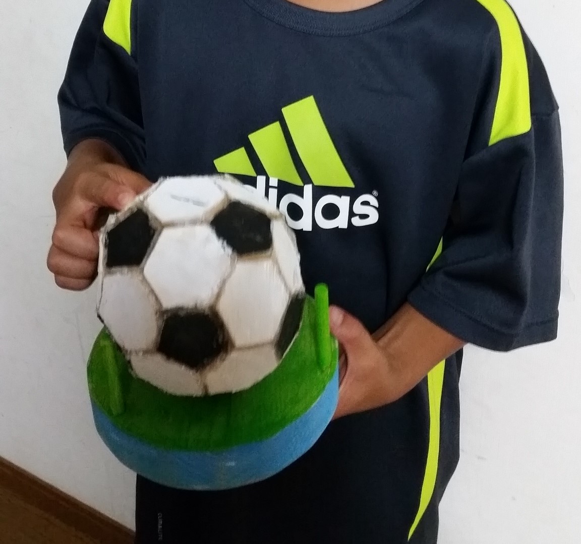 夏休みの自由研究にサッカー貯金箱作り世界に1つだけの箱庭〜fortune箱庭gerden〜フォーチュンハンドメイド。
