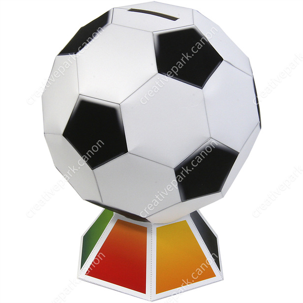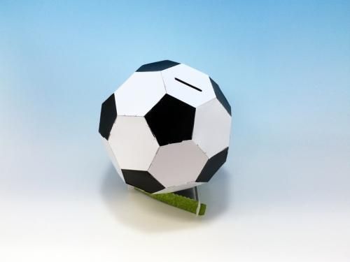 サッカーボール貯金箱」のペーパークラフト。サッカーボーる展開図。ぴのアートのペーパークラフトブログ。
