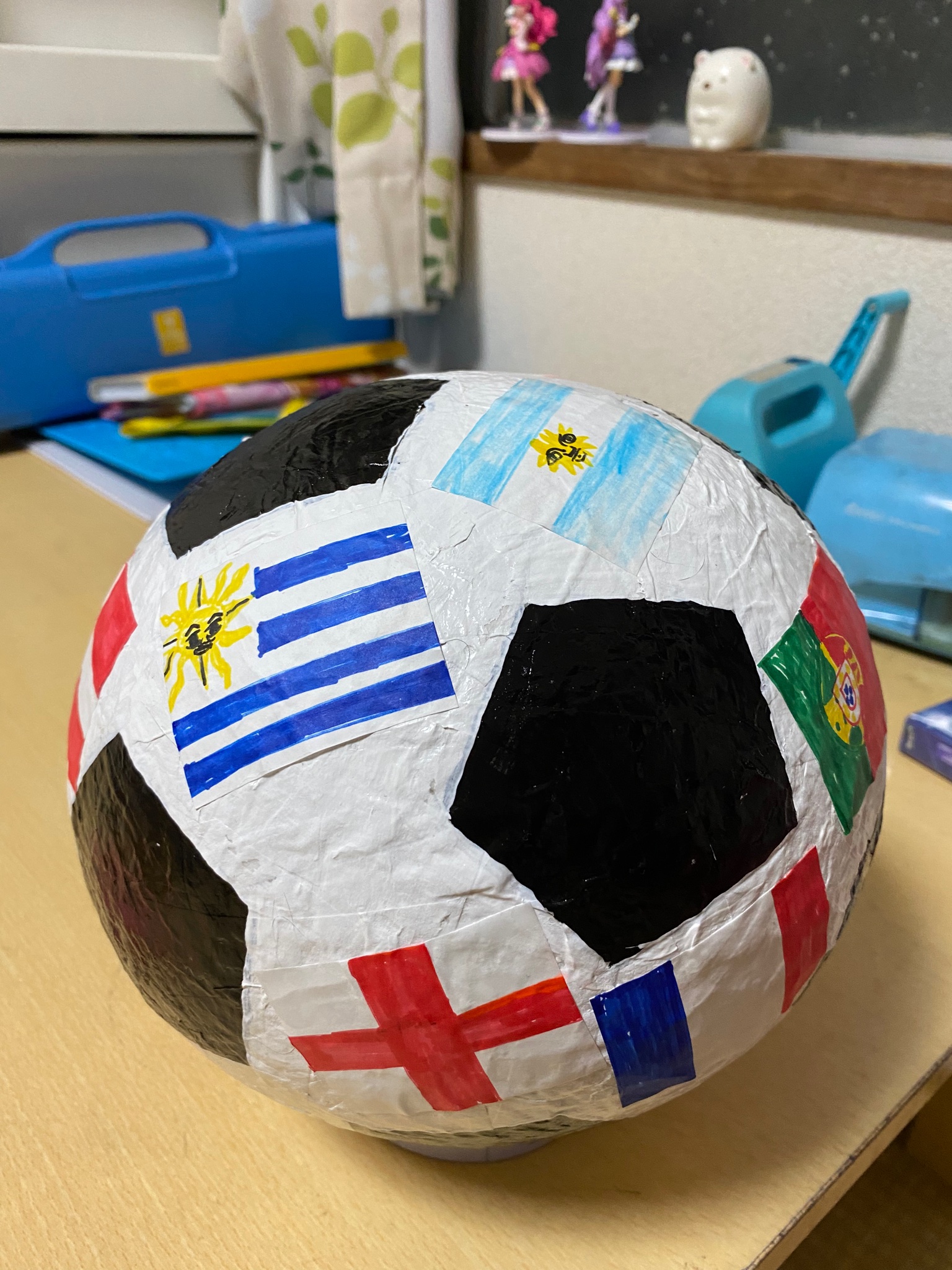 ムータン on X: "子供が紙で作ったサッカーボール貯金箱。紙粘土じゃないよ、半紙で作った。FIFAランクから好きな国選んで国旗書いたんやけど、アルゼンチンとウルグアイが可愛いすぎ!!! https:t.co 1kzwKt0QZu"X。