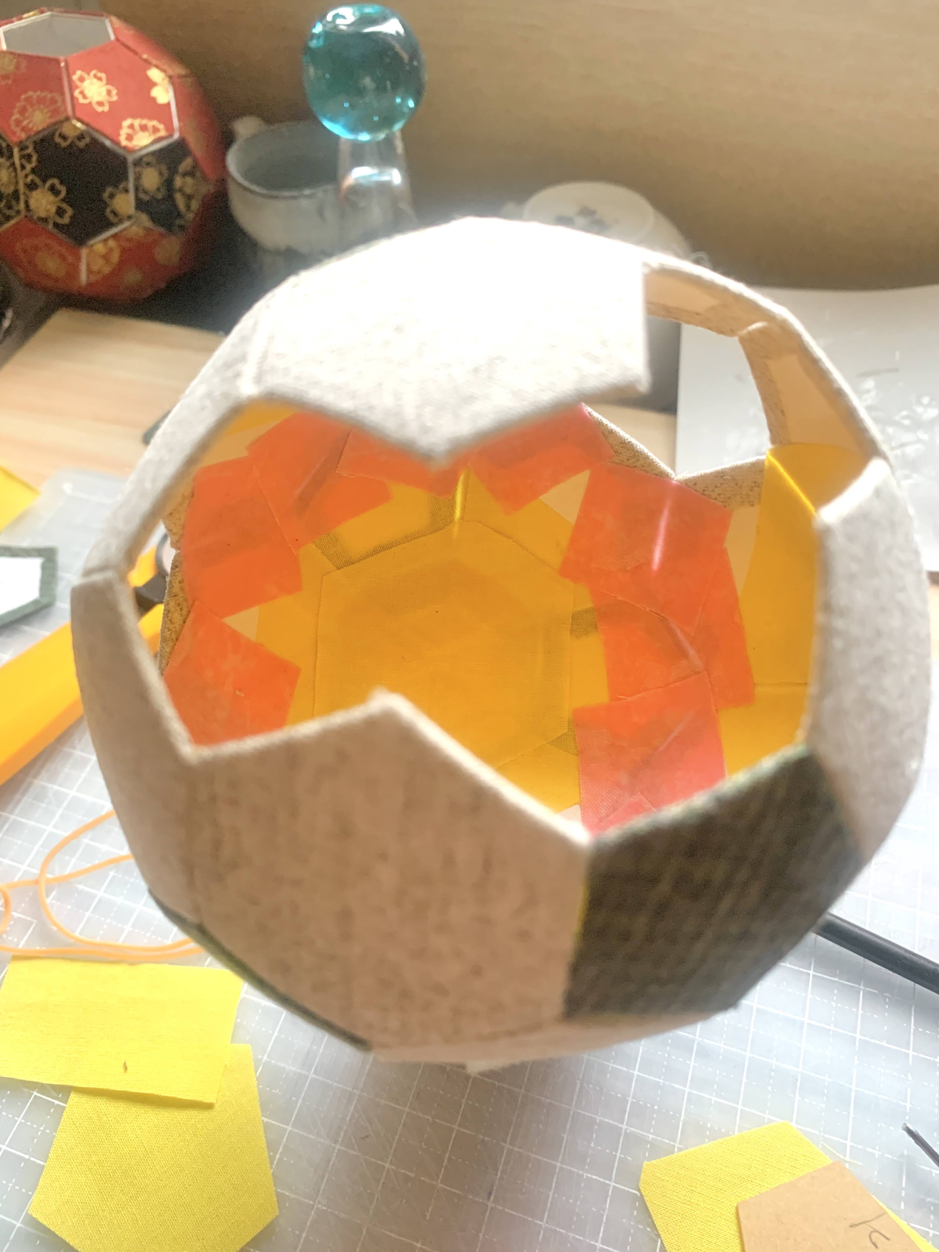 ダンボール工作 サッカーボールを作る_はがしたり。