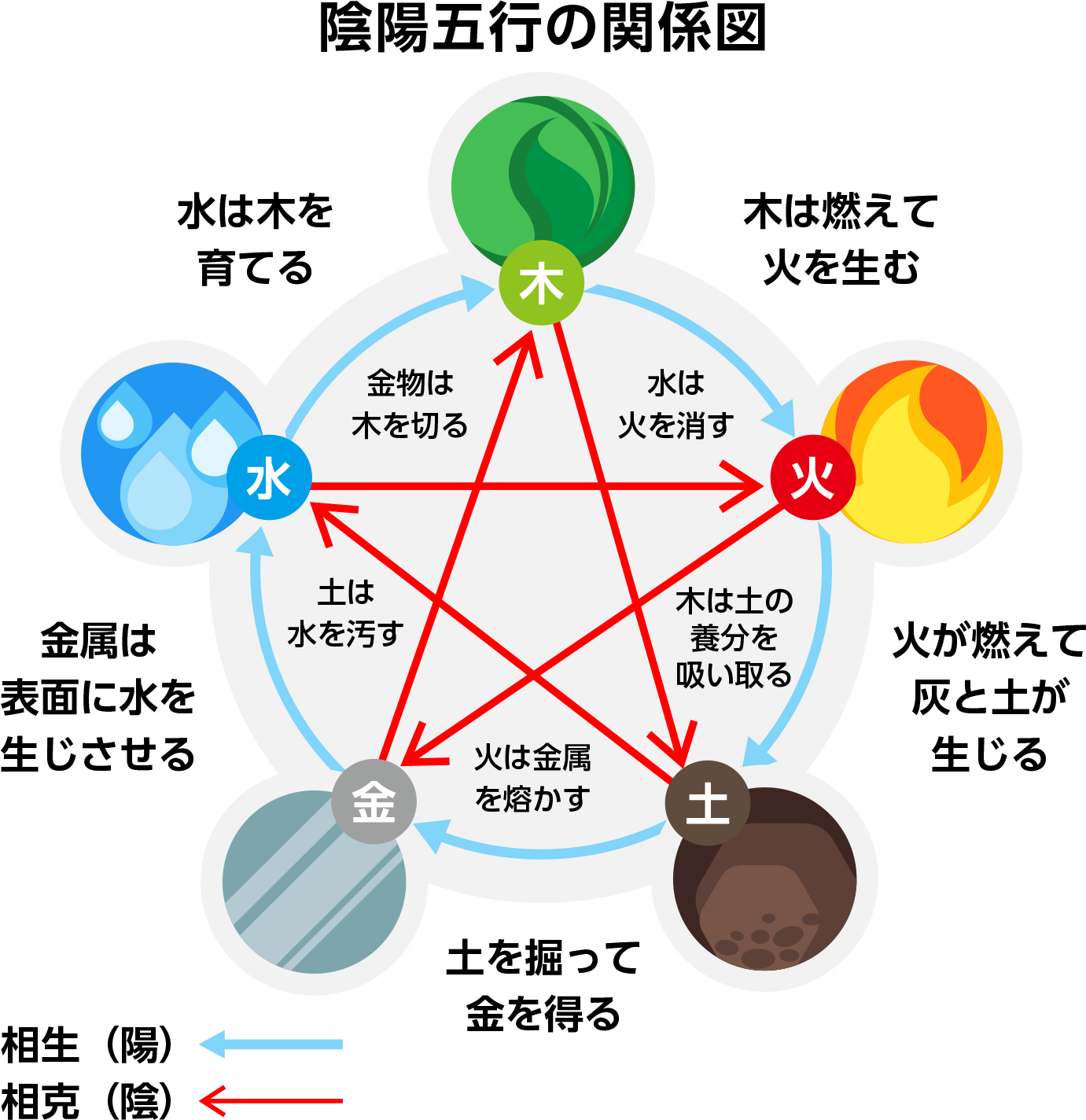 陰陽五行説基礎知識から法則、具体例についてわかりやすく解説。