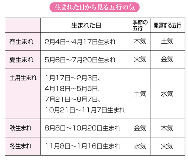 陰陽五行占い 生年月日の早見表で、性格・ラッキーカラーがすぐに分かる!「マイナビウーマン」。