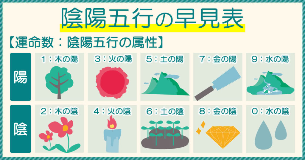 陰陽五行早見表-生年月日と男性女性-五行属性を調べる2023。