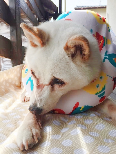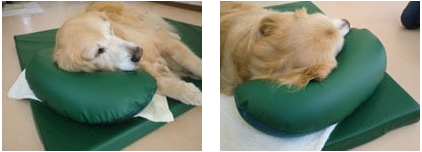 寝たきり老犬の床ずれケアと防止用品キュティア老犬クリニック。