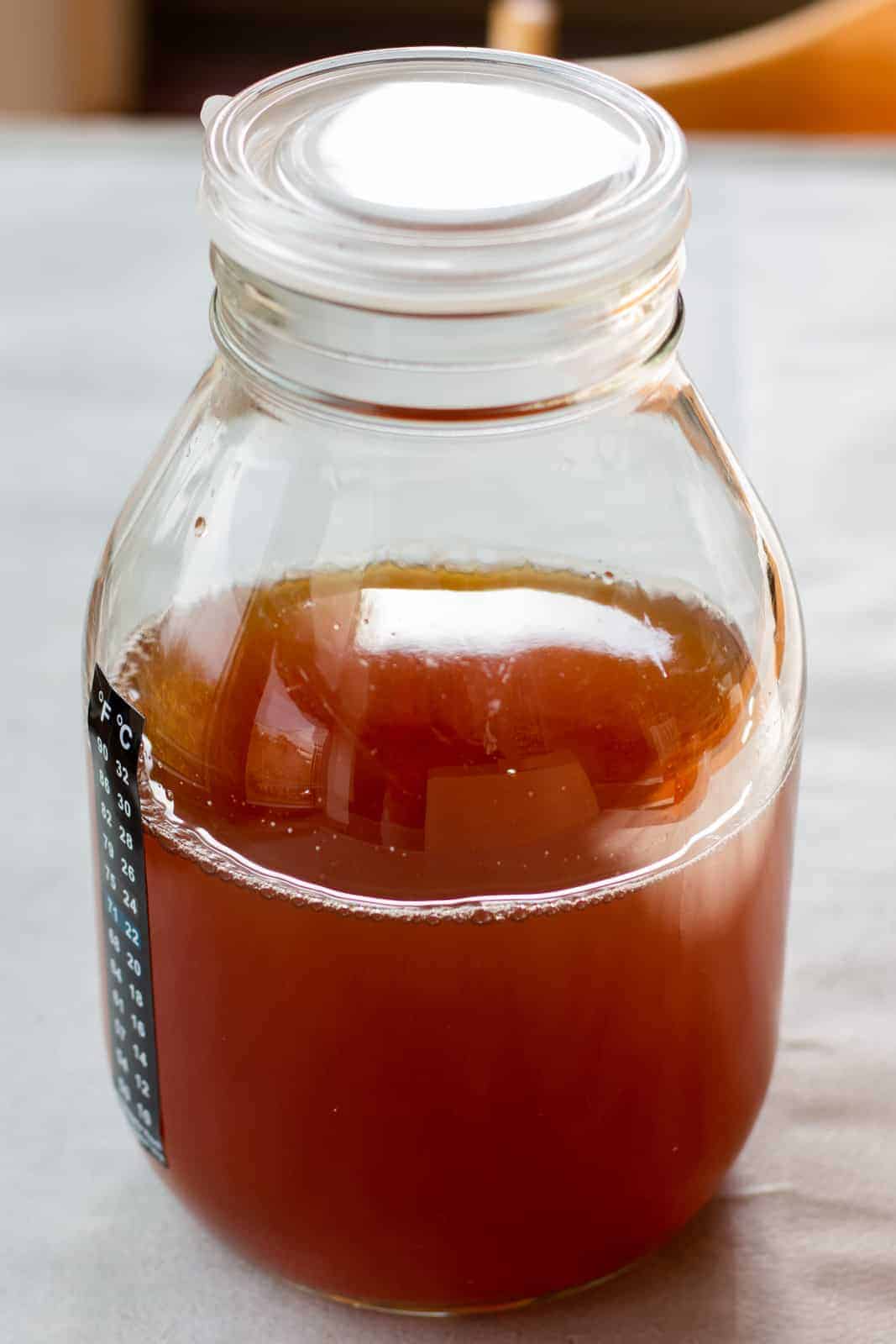 コンブチャの作り方1次発酵Kombucha 1st Fermentation。